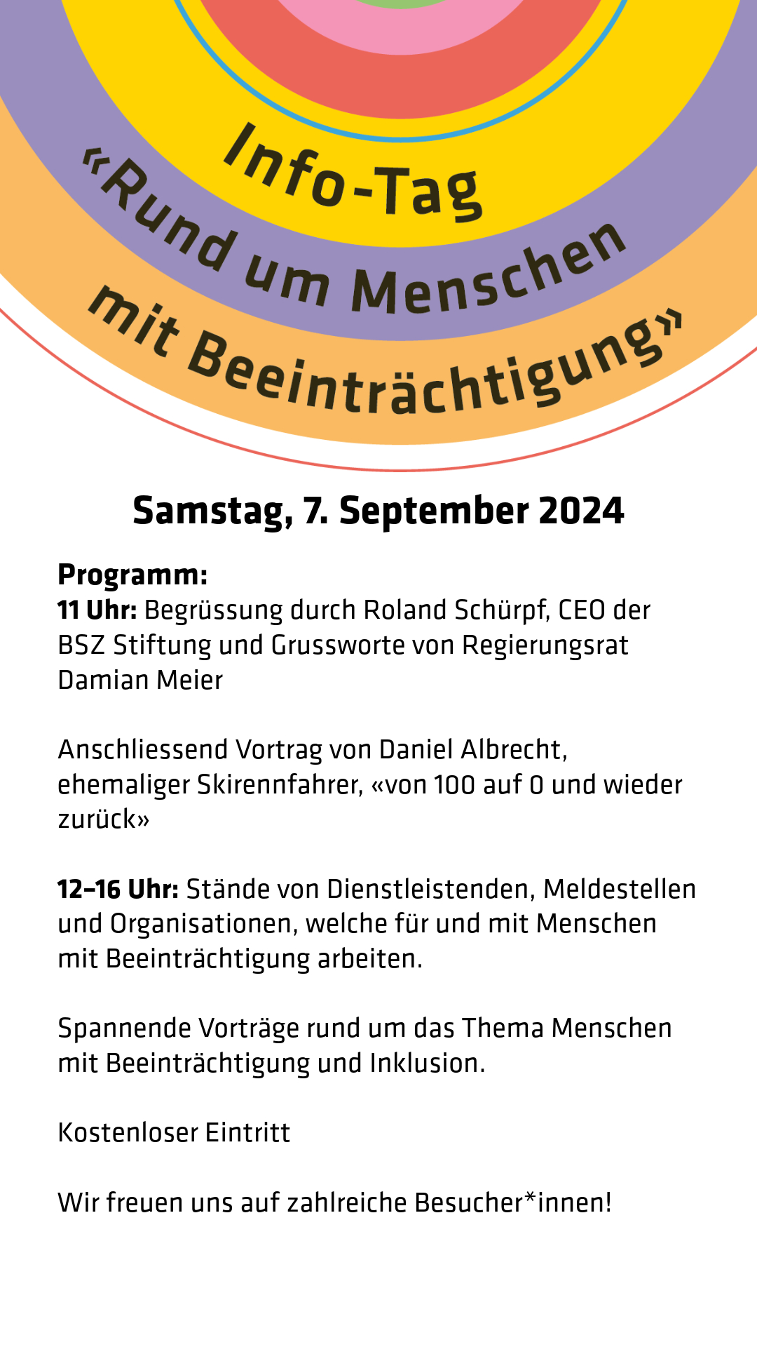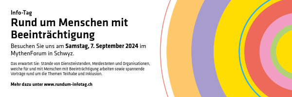 Am Samstag, 7. September 2024 finder der Info-Tag ''Rund um Menschen mit Beeinrtächtigung'' im Mythenforum statt. Die Veranstaltung verfolgt das Ziel, Menschen mit Beeinträchtigung und deren Angehörige die Möglichkeit zu bieten, sich einfach und übersichtlich über kompetente Meldestellen, Dienstleister und Produkte rund um das Thema Beeinträchtigung im Kanton Schwyz zu informieren.