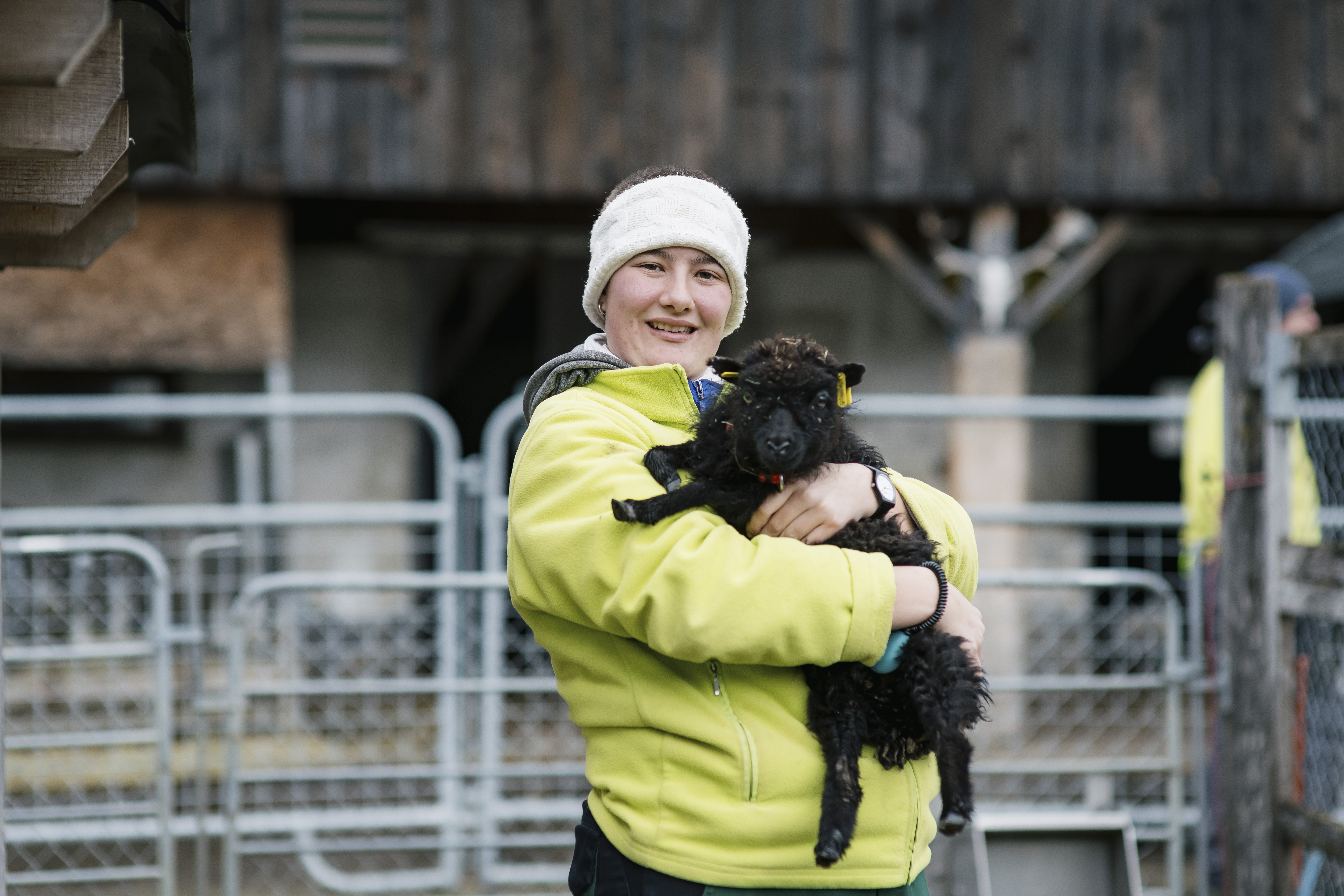Heute arbeiten fünf Mitarbeiter*innen mit Unterstützungsbedarf mit dem Betriebsleiter und erledigen gemeinsam alle Arbeiten, die es auf und rund um den Bauernhof zu tun gibt.