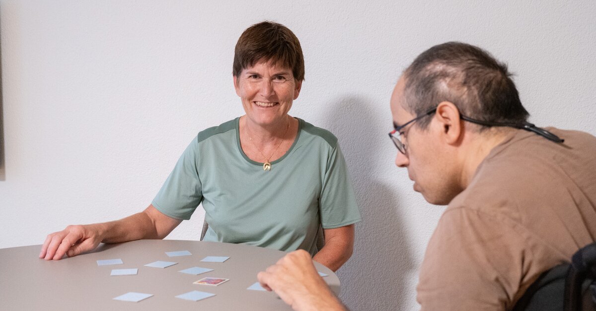 Die ersten Tage merkte ich eine gewisse Zurückhaltung von mir und mir gegenüber, aber je mehr ich die Bewohner*innen kennenlernte, desto einfacher und natürlicher wurde der Umgang miteinander. Ich durfte lernen, wie sich alle verständigen können, mit oder ohne Worte. Die Kommunikation mit Gesten und Gebärden war sehr intensiv und gleichzeitig sehr persönlich. Eine Bewohnerin kommunizierte mit ihrem Tablet. Auf diese Weise kann sie erzählen, was sie während dem Tag erlebt hat. Die Frage am Schluss: «Und was hast du heute gemacht?» lädt zum Erzählen ein. Ein Austausch auf Augenhöhe, bei dem ich jeweils viel gelernt habe.