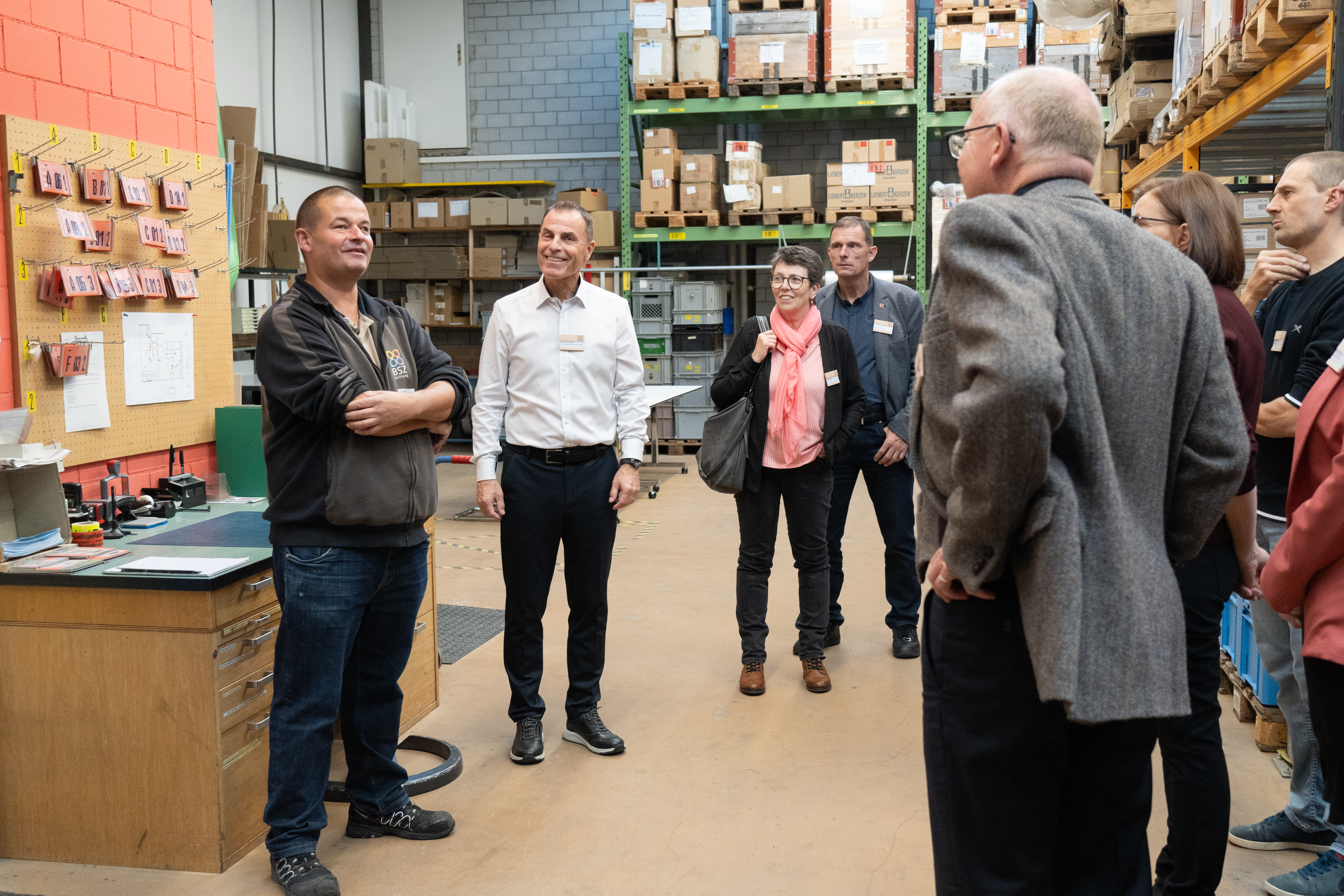 Am Freitagabend trafen sich Vertreter*innen aus der Politik, Partner*innen und treue Kunden aus der Privatwirtschaft der BSZ Stiftung in Einsiedeln. Auf einem Rundgang erhielten die Gäste einen Ein-blick in die Arbeiten der BSZ Stiftung. Nach der Begrüssung durch CEO Rolf Müller und Stiftungsratspräsident Paul Lalli, richtete Regierungsrat Damian Meier seine Grussworte an das Publikum.