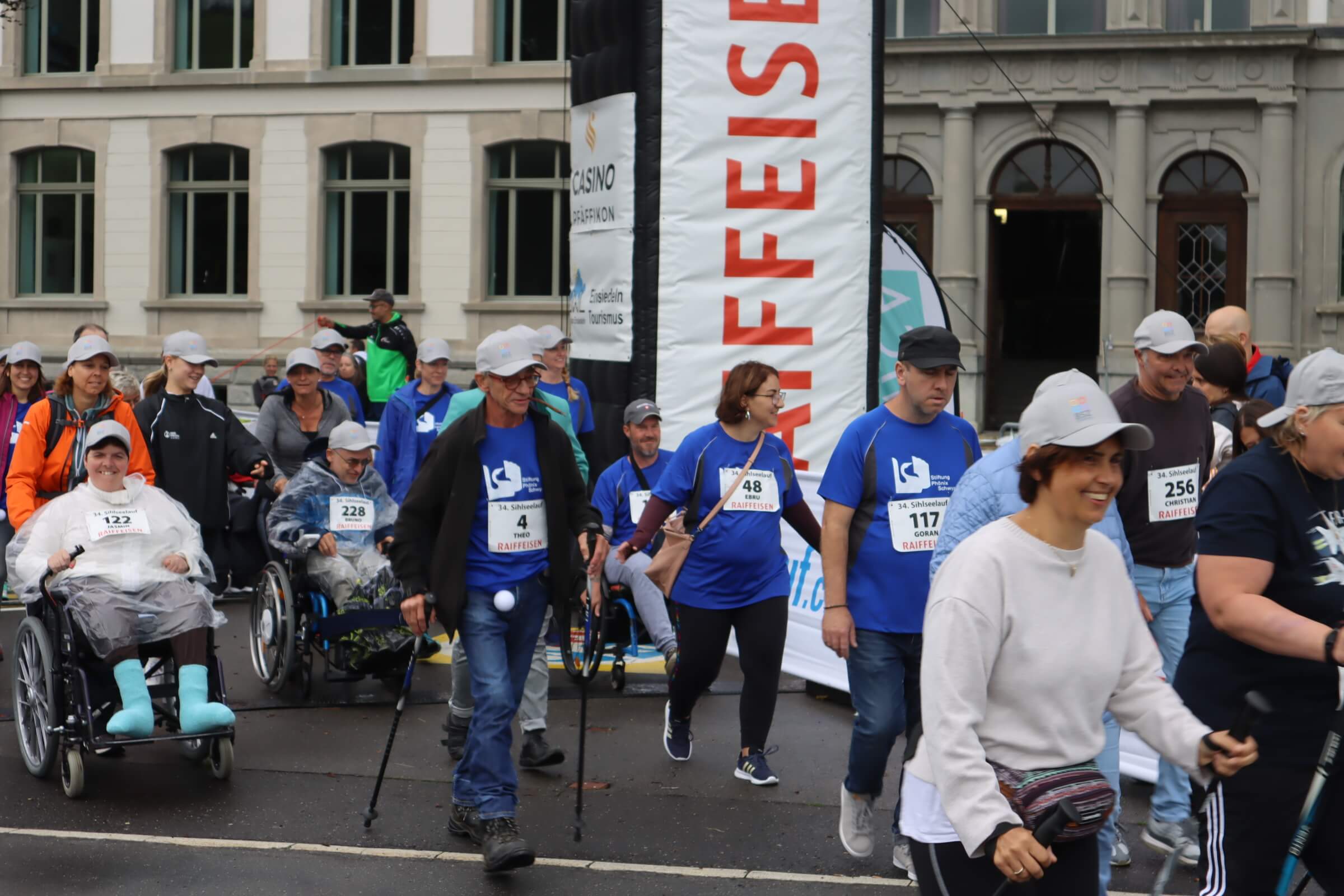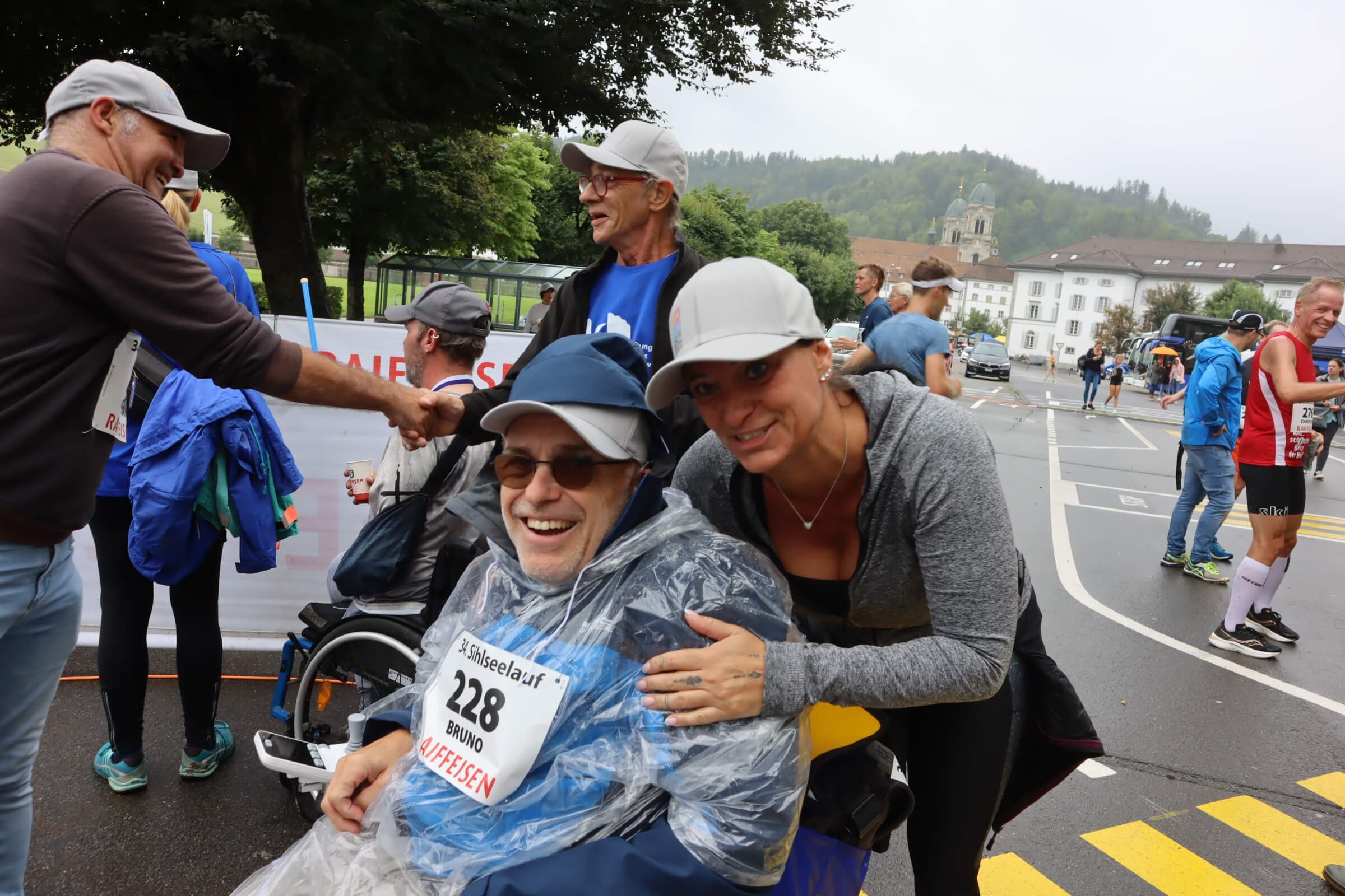 Am Samstag liefen Mitarbeitende und Bewohner*innen der BSZ Stiftung und der Stiftung Phönix Schwyz selbständig und in Begleitung am beliebten Einsiedler Sihlseelauf mit. Gerade die 3.75 km lange Walkingstrecke ist bei Menschen mit Unterstützungsbedarf besonders beliebt. In der Gruppe herrschte schon vor dem Start trotz leichtem Nieselregen gute Laune. Etliche konnten es kaum erwarten, bis sie sich an der Startlinie bereit machen konnten. Letztlich trafen alle Teilnehmer*innen wohlbehalten wieder im Ziel ein, stolz über die erbrachte Leistung. Der Rang spielt dabei eine Nebenrolle, ganz nach dem Motto «Dabei sein und mitmachen».