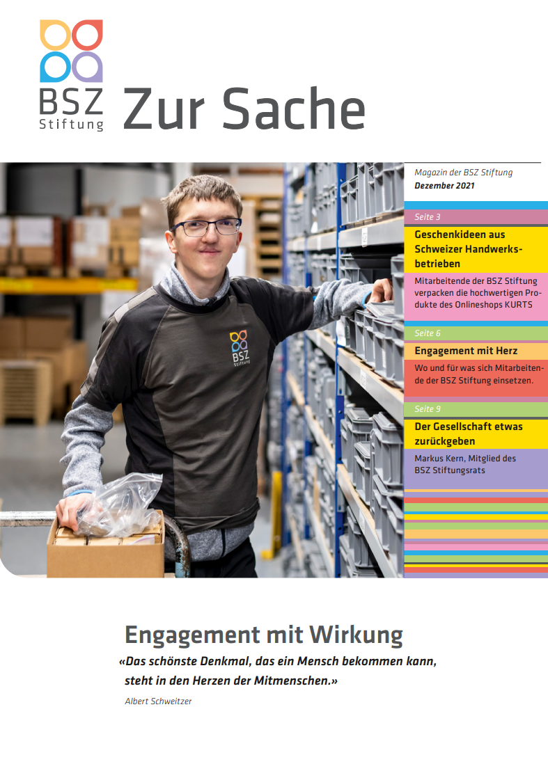 Erfahren Sie, wofür sich unsere Mitarbeitenden engagieren, wie die Zusammenarbeit mit dem Onlineshop KURTS zustande kam und wie viel Freude das BSZ Ferienlager bereitete.